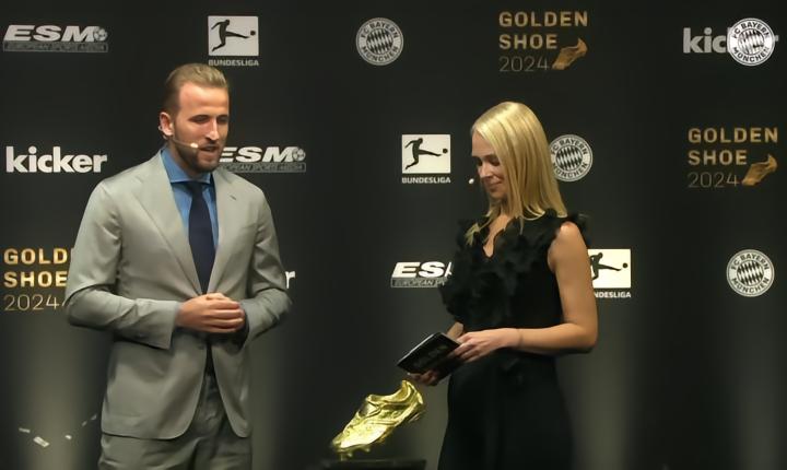 拜仁慕尼黑前锋哈里-凯恩喜获2023/24赛季欧洲金靴奖